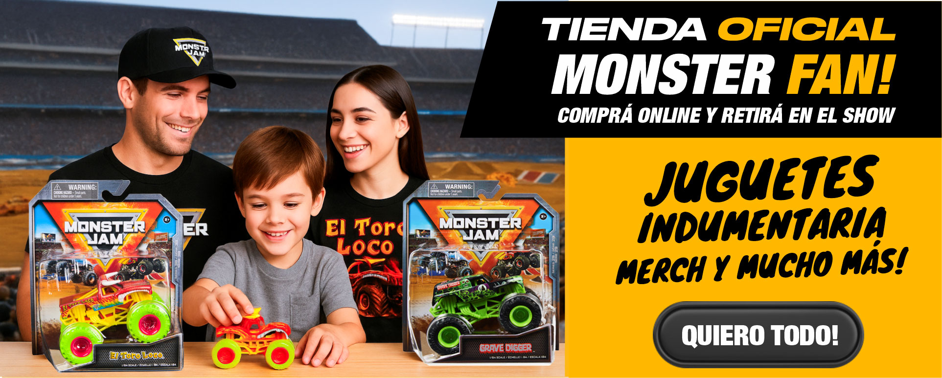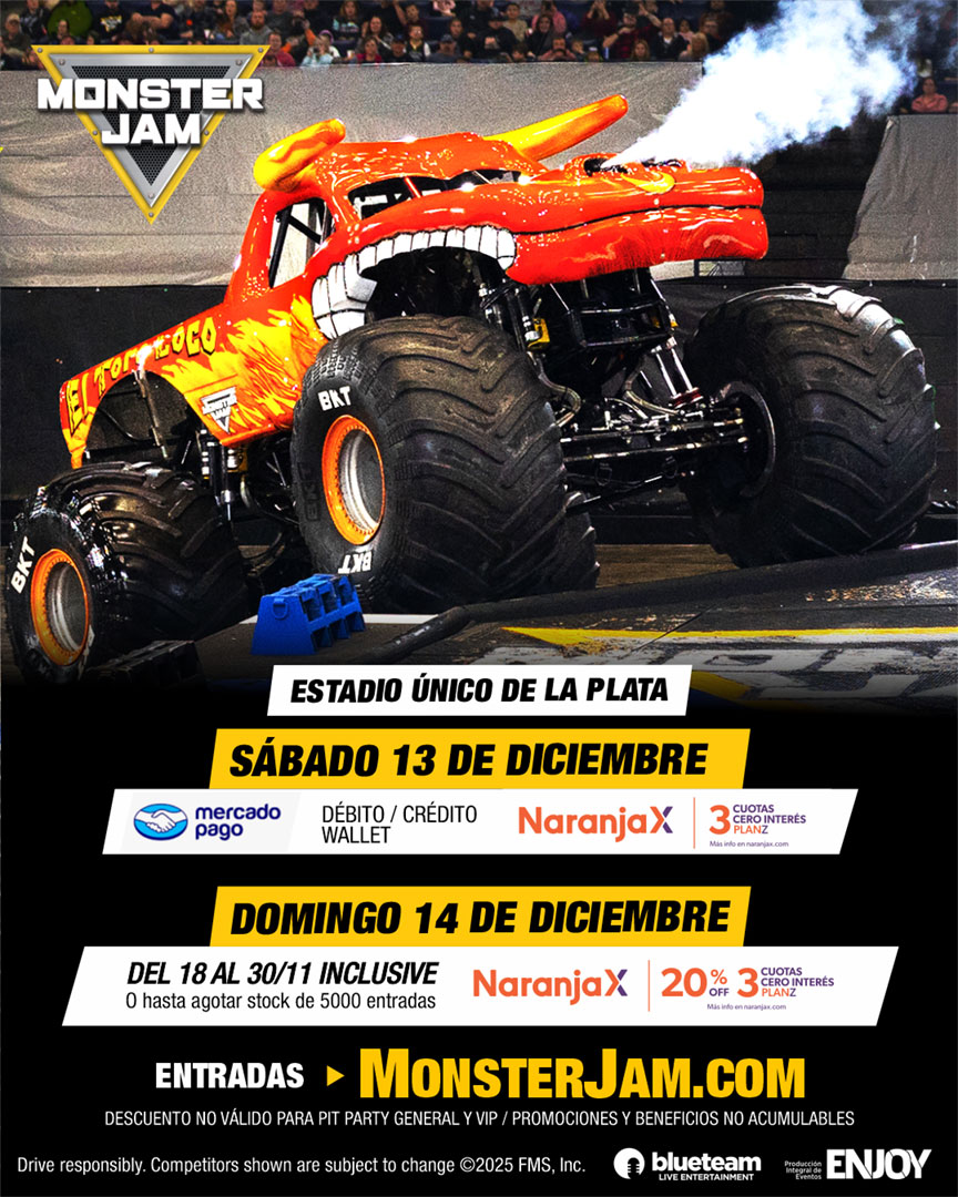 Monster Jam es el show de motor y entretenimiento familiar más grande del mundo. Nacido en EE. UU. en los 90, conquistó estadios icónicos en todo el planeta con sus monster trucks de más de 5 toneladas, capaces de saltar más de 10 metros y hacer piruetas imposibles.